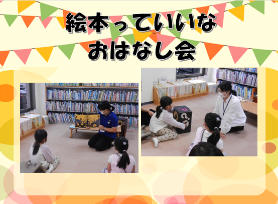 10月1日 おひざにだっこのおはなし会 「おはなしボランティアすぎのこ」さんによる 赤ちゃん向けのおはなし会です。 はじめてのおともだちも来てくれましたよ☆ 大型絵本や手あそびにエプロンシアターなど 盛りだくさんの楽しいおはなし会でした! どうぞお気軽にご参加ください。 10月25日 楽器いっぱい!ちいさなおはなし会 「ことりの音楽隊」さんによる、楽器をつかったおはなし会です。 「とんぼのめがね」や「秋の七草」「どんぐりころちゃん」など 秋の歌をみんなで楽しいリズムにのって、たくさん歌いました♪ 歌のほかに、絵本や紙芝居と手あそびもしました。 赤ちゃんから大人まで楽しめます!次回もお待ちしています! 10月26日「絵本っていいな」おはなし会北九州市子ども読書の日スペシャル! 「ノーテレビ・ノーゲーム・読書の日」にあわせて 図書館職員がおすすめの絵本を紹介するおはなし会です。 今回は北九州市子ども読書の日スペシャル! 「箱の中身は何だろな?」ゲームをしたり、 おばけのおりがみを折ったりました。 おはなし会でたくさんの本に出会って 「絵本っていいな」と思ってもらえるとうれしいです。 ☆おはなし会で読んだ本☆ 『よるのとしょかん』 『ハロウィンナー』 「まんまるまんまるたんたかたん」(紙芝居) 『やきいもどーん』